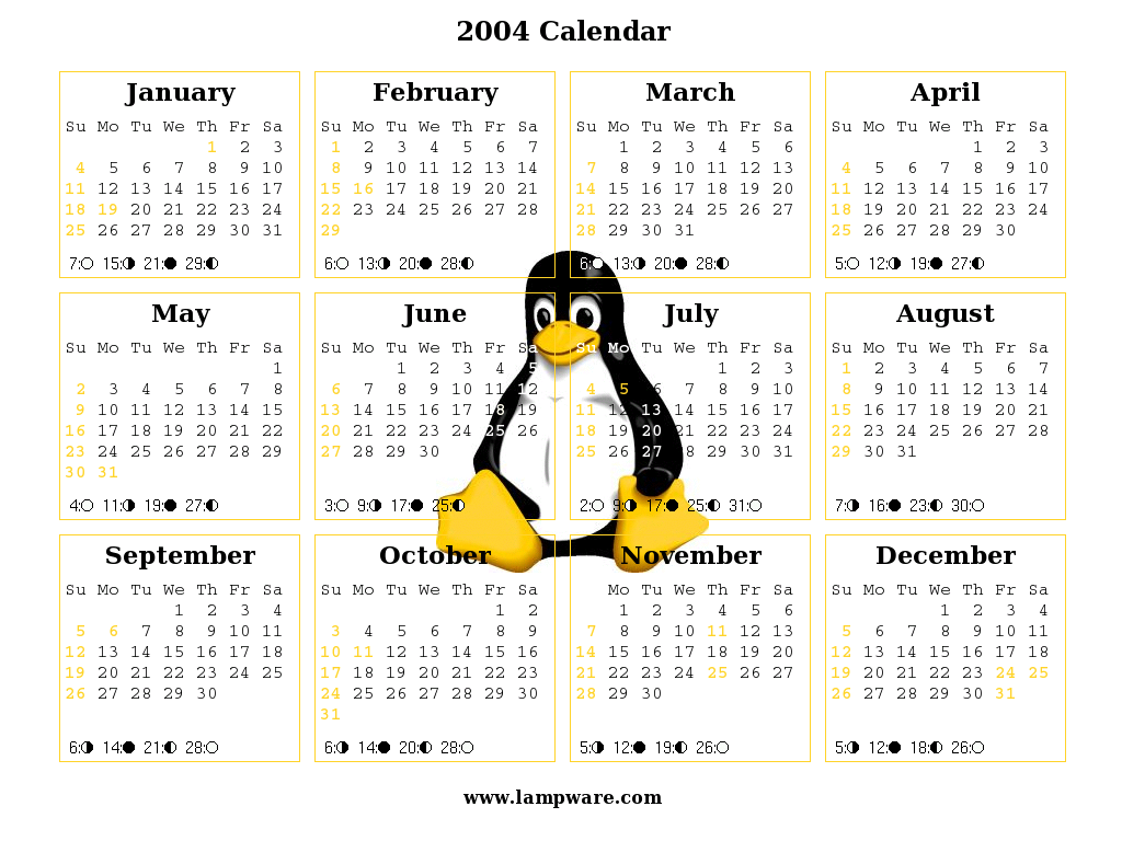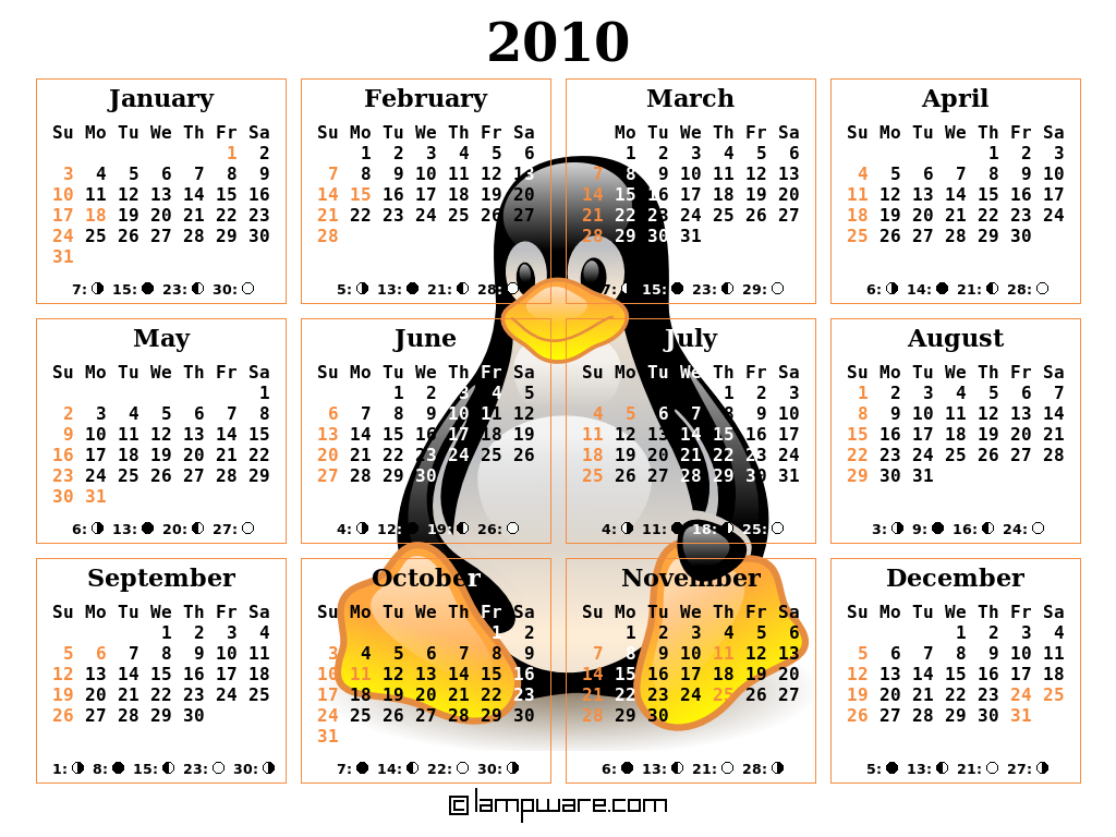 - Suggestions for new calendars are always welcome, but I can not promise they will be used.